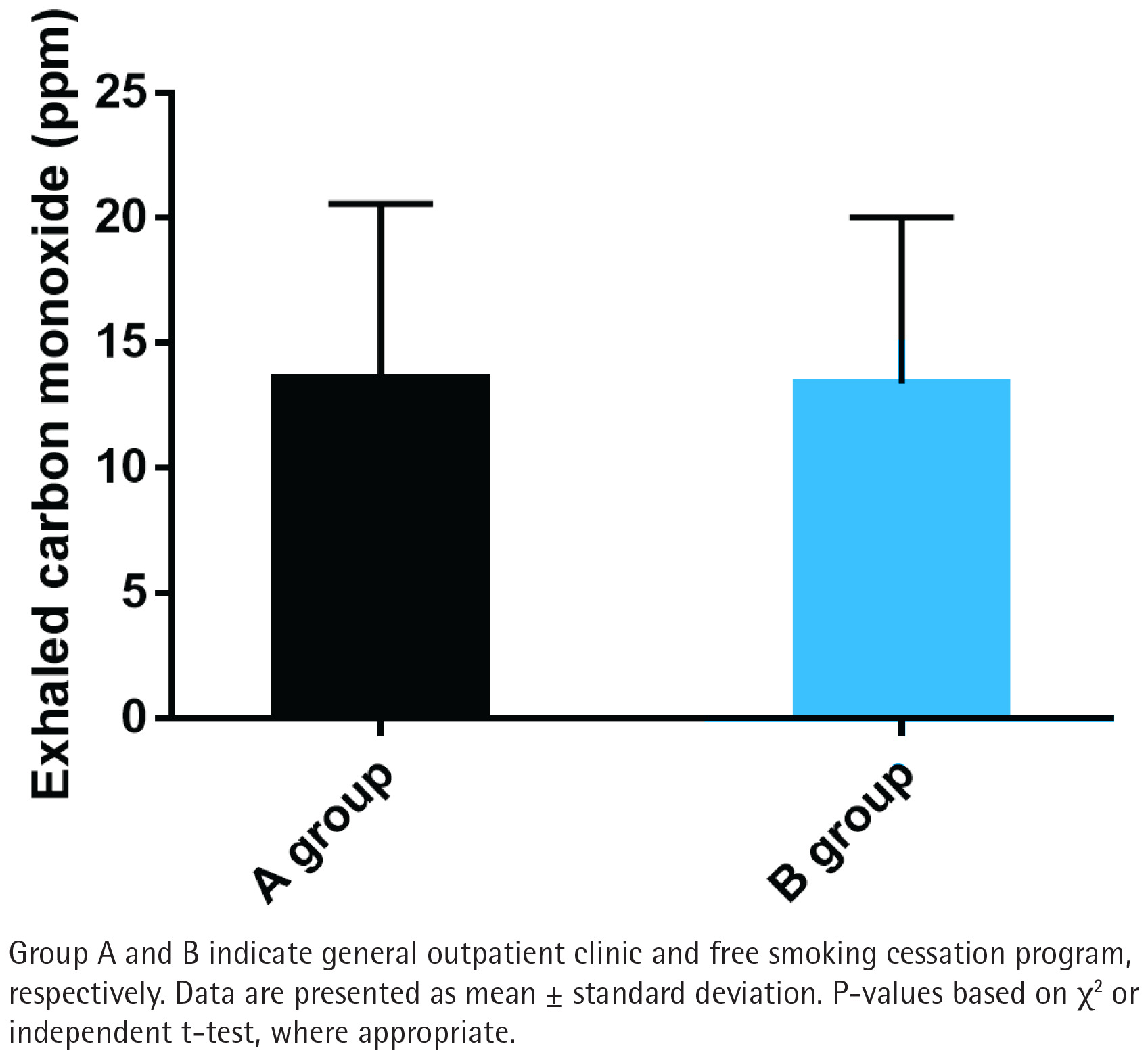 The demographic data of groups A and B were compared and analyzed, including gender, age, education level, marriage, occupation, monthly income, average monthly cigarette smoking cost, cigarettes smoked per day, duration of cigarette smoking, pack-year, and medication19,20.