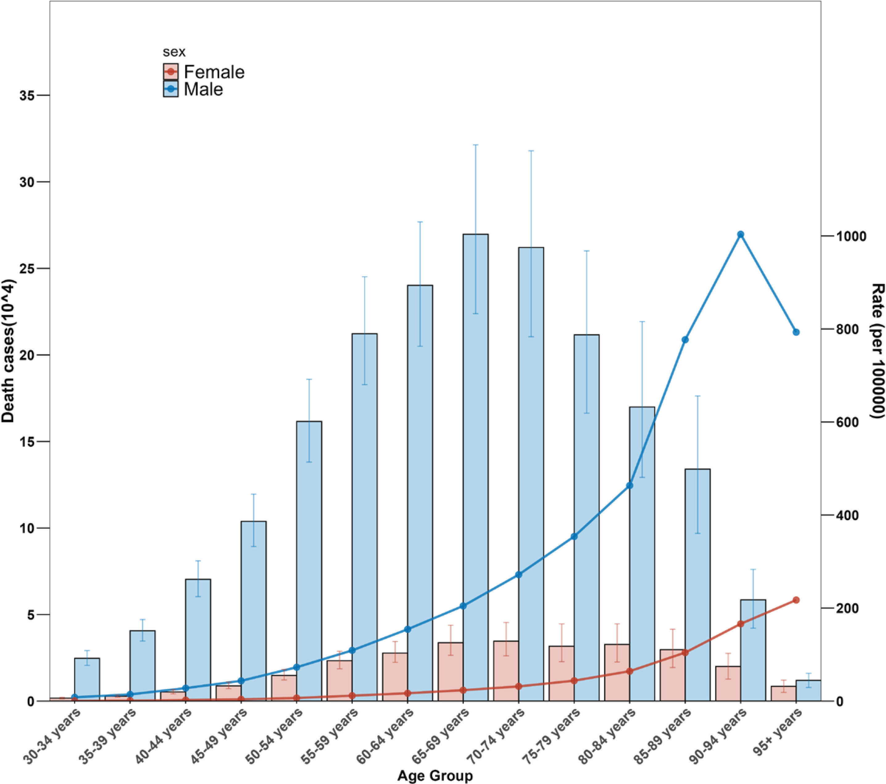 In 2021, the burden of CVD attributable to smoking, including both mortality and YLDs, was higher in men than in women. Moreover, the peak in mortality and YLDs occurred earlier in men than in women. The gender differences in disease burden may not only be associated with smoking prevalence but also with the age of smoking initiation and hormonal differences. A risk analysis of smoking initiation age found that each year of delay in starting smoking reduces the risk of cardiovascular events by 4%. Additionally, men generally start smoking at an earlier age than women24,25. Besides the age of smoking initiation, hormones also play a critical role in regulating cardiovascular function. For instance, estrogen in the endocrine system can reduce the incidence of cardiovascular events by improving vasodilation, regulating lipid metabolism, and exerting anti-atherosclerotic effects26. These factors are crucial in explaining the gender differences in the distribution of smoking-attributable cardiovascular disease.
